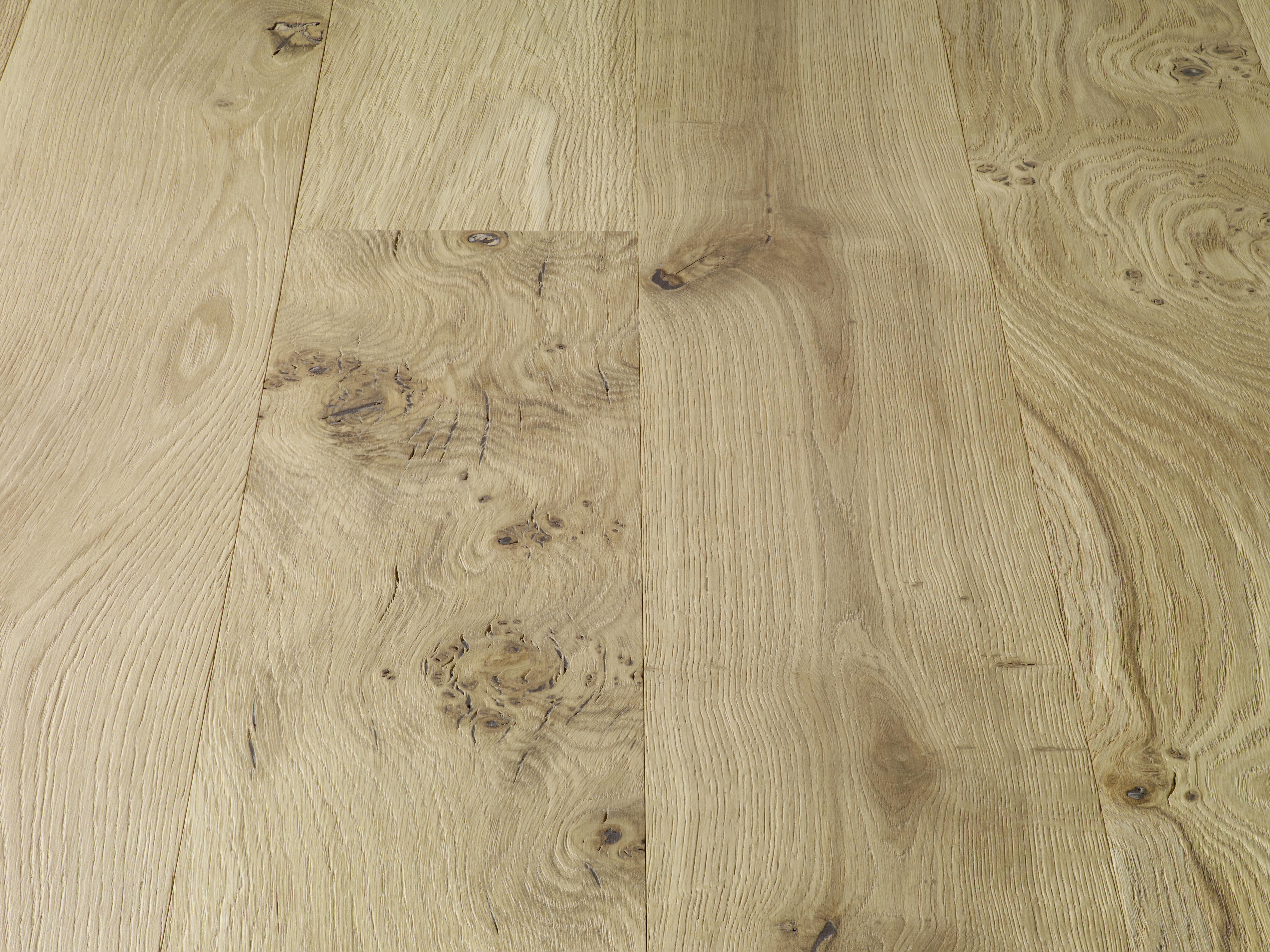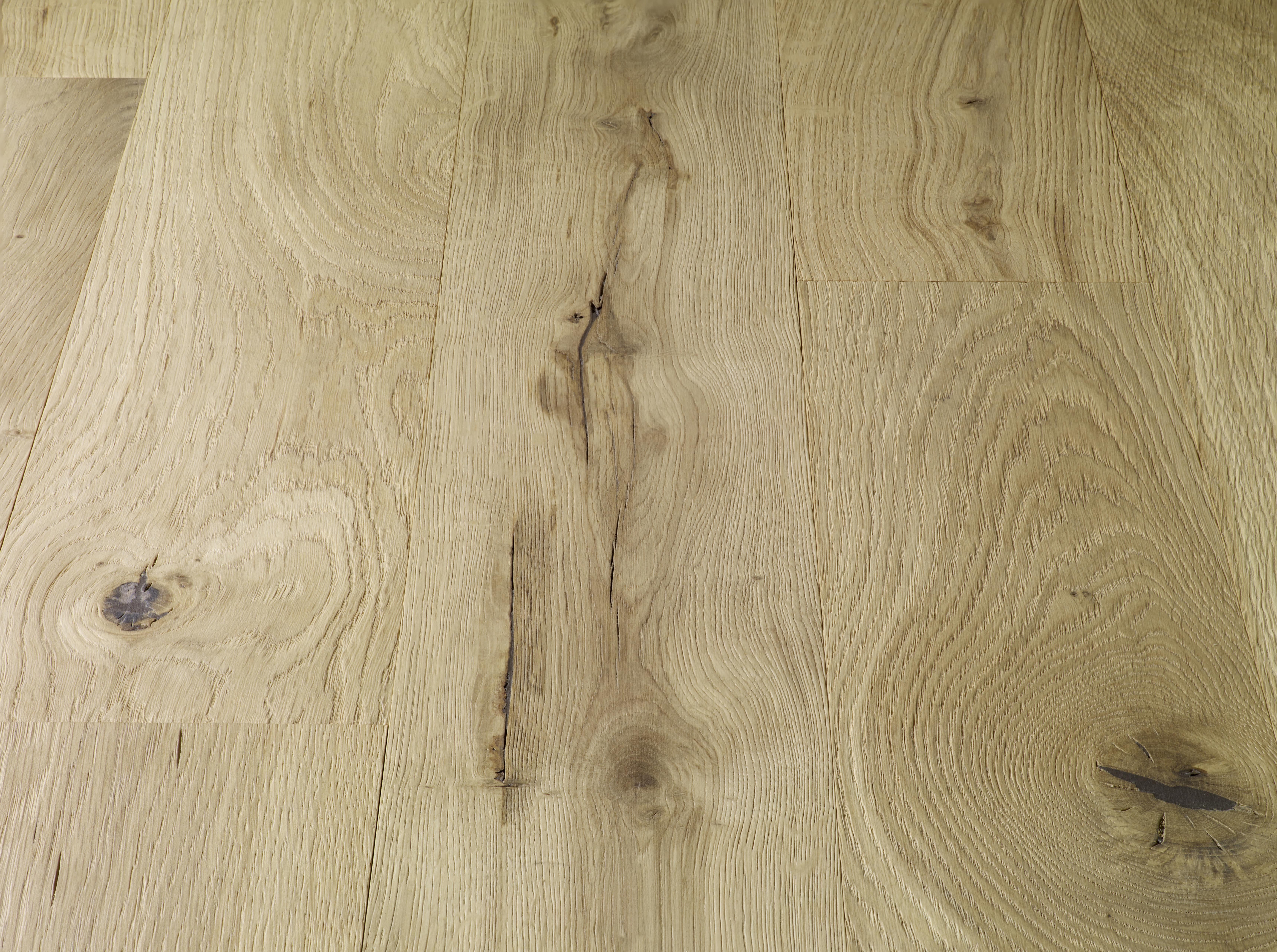 Finition : Parquet structuré, vernis incolore, bords ronds, aubier et support contreplaqué